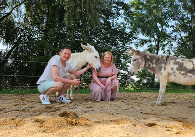 Wir, das sind Sina und Konrad und wir haben uns vor ein paar Jahren die Frage gestellt wie wir unsere Lebenszeit verbringen wollen und was wir in und für diese Welt bewirken wollen. Dabei sind wir auf unser Bedürfnis nach einem Leben in und mit der Natur gekommen - auf dem Land, in einer schönen Umgebung, wo man Platz hat, weit gucken kann und mit Tieren leben kann. Und wir wollen unseren Hof von Zeit zu Zeit gern mit anderen liebevollen Menschen teilen (z.B. durch die Vermietung der Ferienwohnung EselGlück, Seminare am Hof oder begleitete Auszeiten für kleine Gruppen.